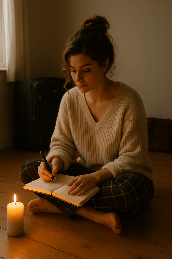 Still wearing pajamas, she lit a small candle she’d bought the previous afternoon from a charming little shop in Rathmines. It smelled of bergamot, woodsmoke, and something else elusive—comforting yet unfamiliar. Sitting cross-legged on the bare wooden floor, she opened her journal in the candlelight, leaving the overhead lights off. This moment felt sacred, worthy of gentleness and quiet.
